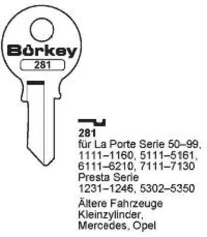 Mallikuvassa Börkey avaimen muoto ja sarjat.